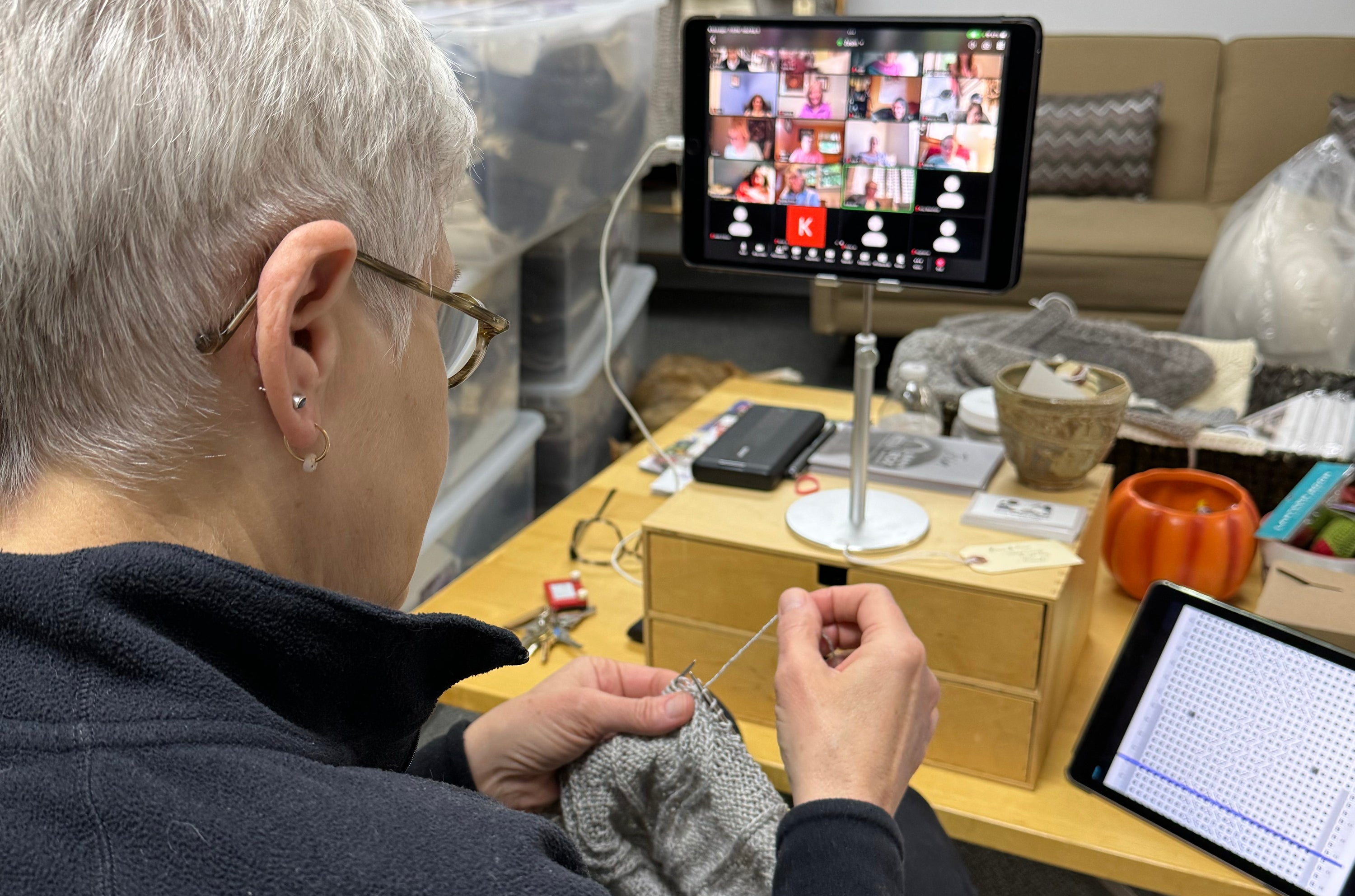 We connect through Zoom chat meetings, offering a fantastic way to meet knitters and even crocheters from around the world!